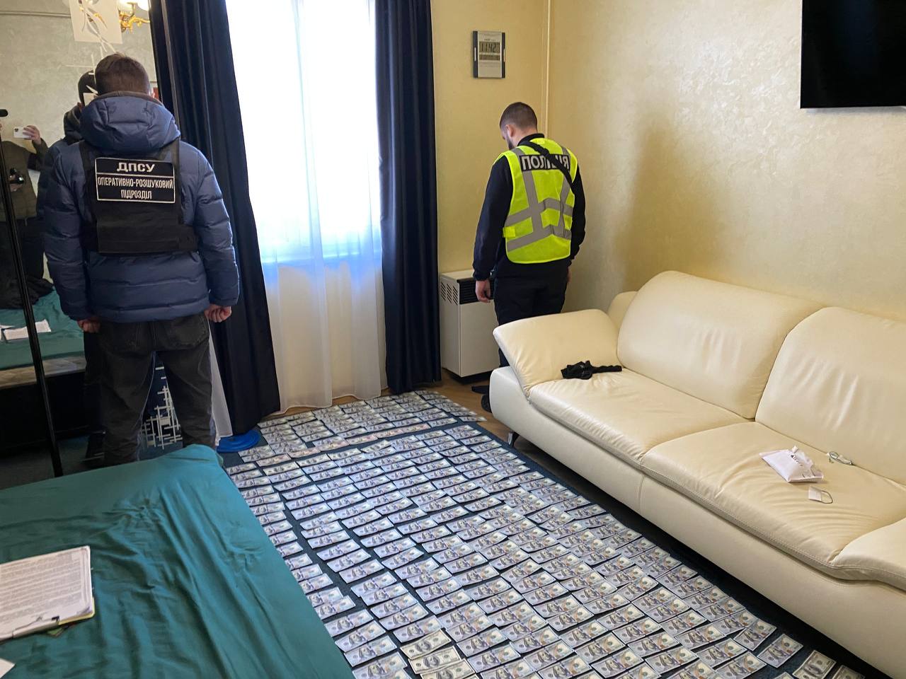 В ході 10 обшуків у Києві, Київській, Львівській та Закарпатській областях за місцями проживання фігурантів та в транспортних засобах вилучили 10 мобільних телефонів, 7 транспортних засобів, готівку в національній та іноземній валюті, оргтехніку, банківські картки тощо.