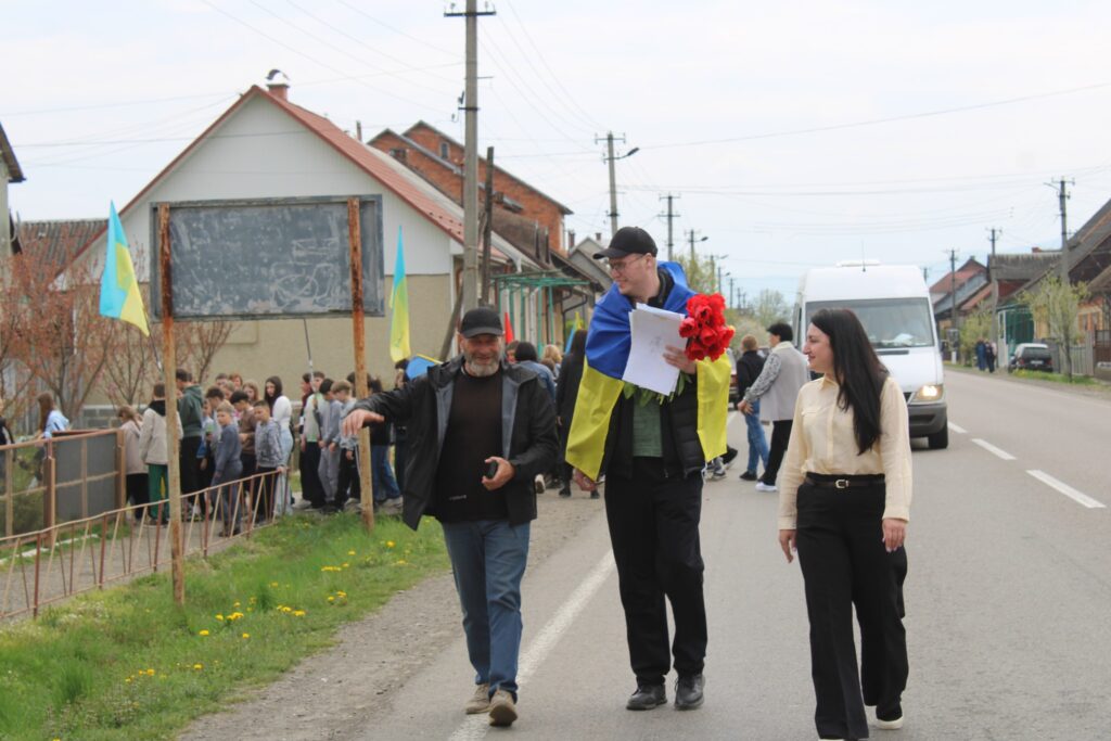У громаді захисника зустріли з синьо-жовтими прапорами місцеві жителі, учні, працівники закладів освіти, сільської ради, ветерани, жителі навколишніх сіл.