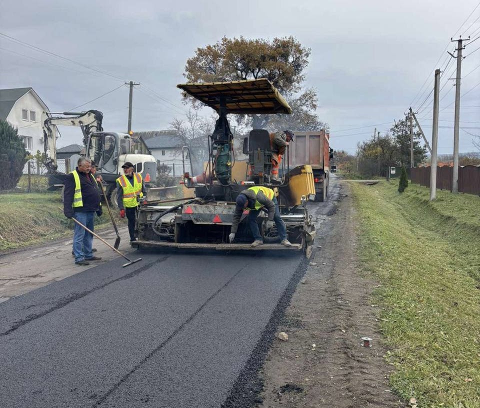 На місці залучена спецтехніка: проводиться підготовка основи дороги та укладання асфальтобетонної суміші.