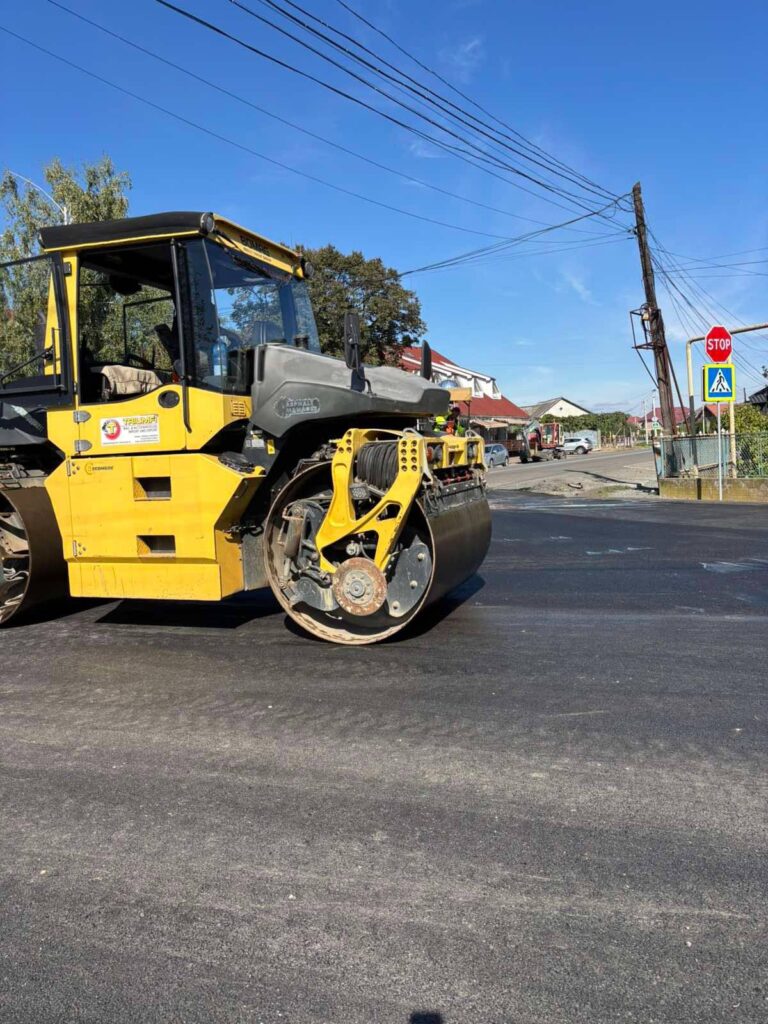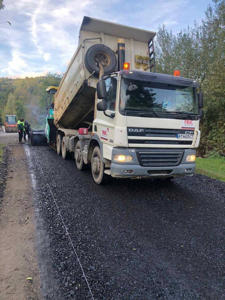 Підрядна організація Служби місцевих автомобільних доріг у Закарпатській області здійснює фрезерування зношеного покриття, готує основу під новий шар, укладає асфальтобетон і виконує ущільнення дорожнього полотна.