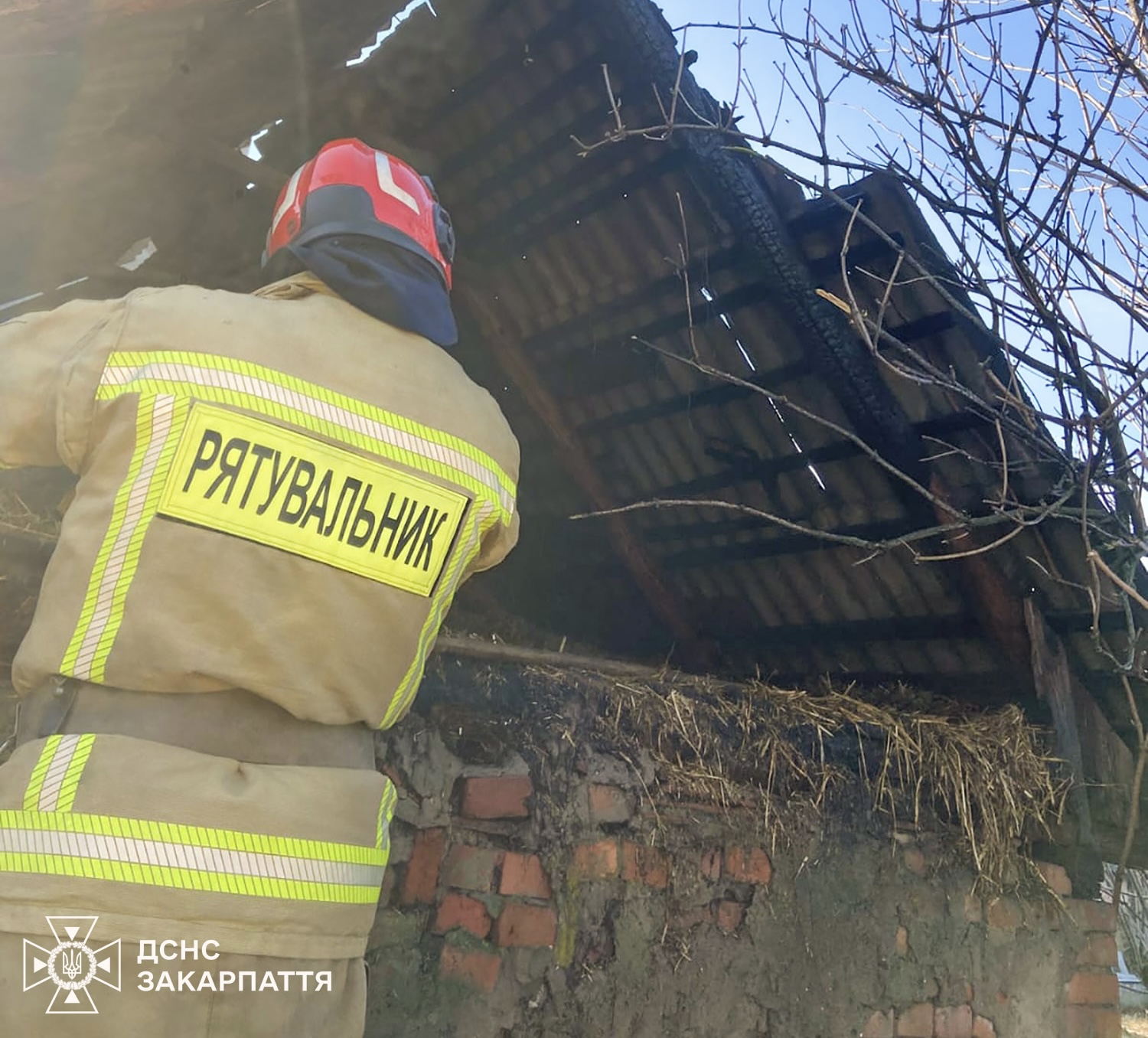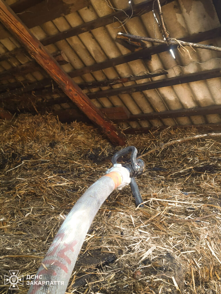 Вогонь пошкодив покрівлю споруди та знищив близько 2 тонн сіна. Водночас рятувальникам вдалося не допустити поширення полум’я на житловий будинок поруч. Причини пожежі та завдані збитки встановлюються.