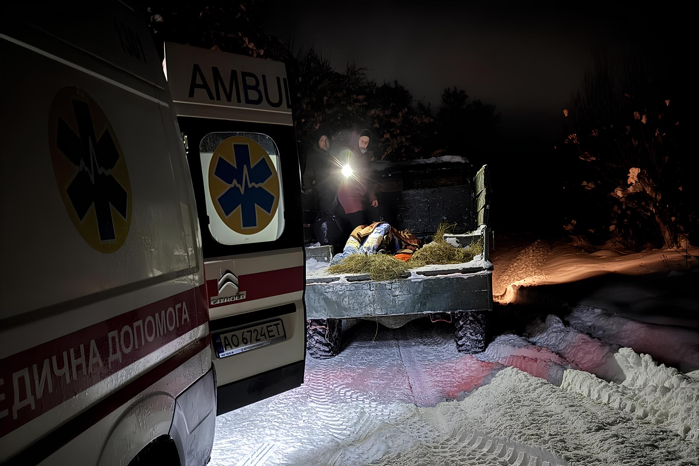 Пацієнта транспортували у кузові вантажівки на теплому сіні до карети швидкої допомоги. Ця надскладна рятувальна операція тривала майже чотири години, і завершилася успішною госпіталізацією постраждалого.