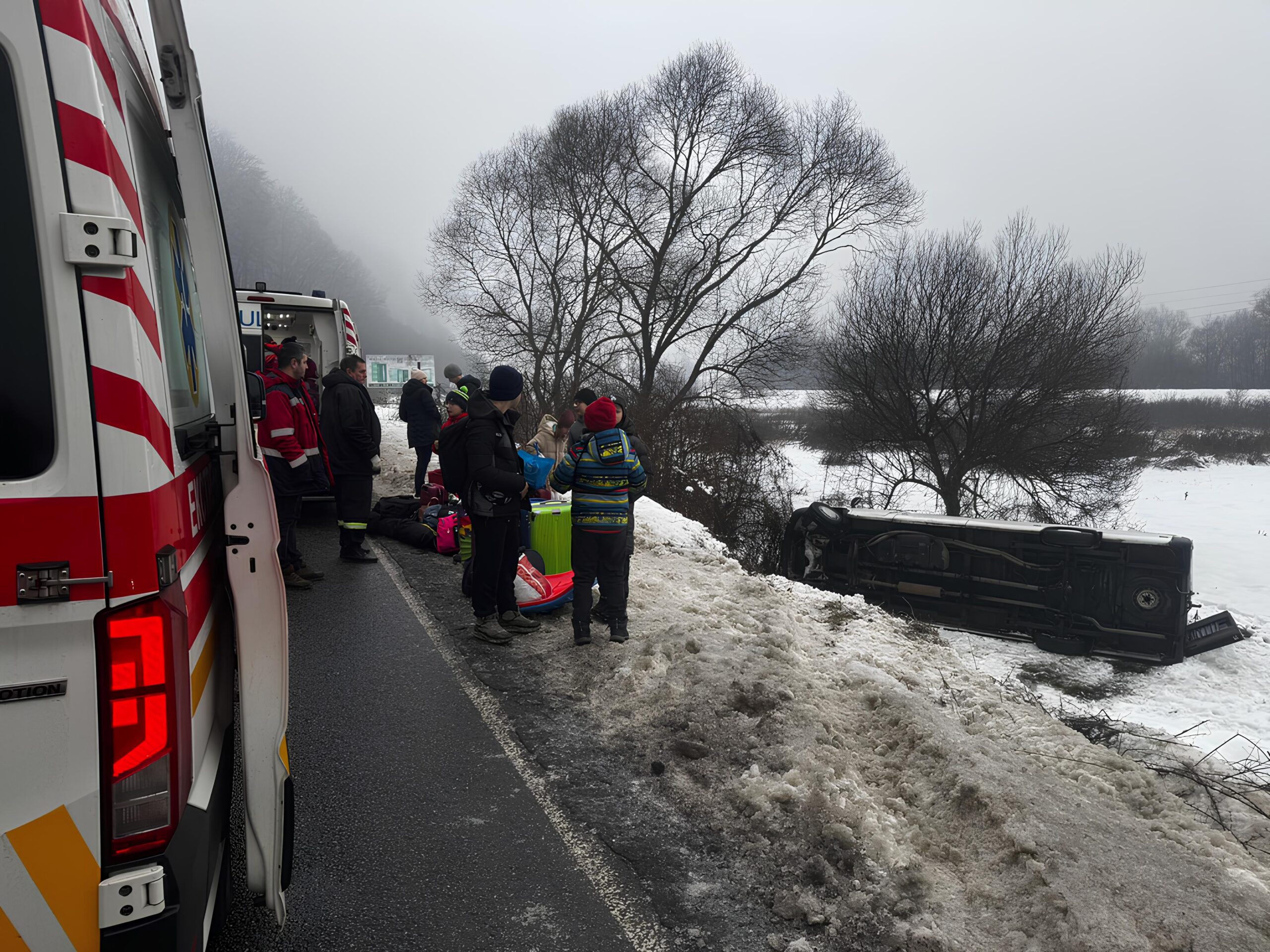 Учора вранці на автошляху між Перечином та Зарічовом сталася дорожньо-транспортна пригода за участі пасажирського мікроавтобуса, у якому перебували діти. Повідомлення про перекидання транспортного засобу надійшло на лінію 103 о 8:36, після чого на місце події оперативно прибули дві бригади екстреної медичної допомоги.