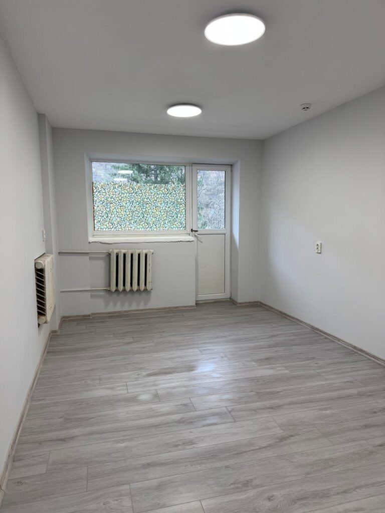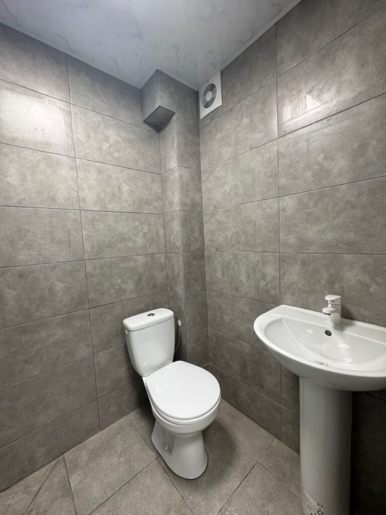 У межах ремонтних робіт здійснили демонтаж старих покриттів, встановили плитку, змонтували стелі з гіпсокартону та підключили сантехнічну систему.
