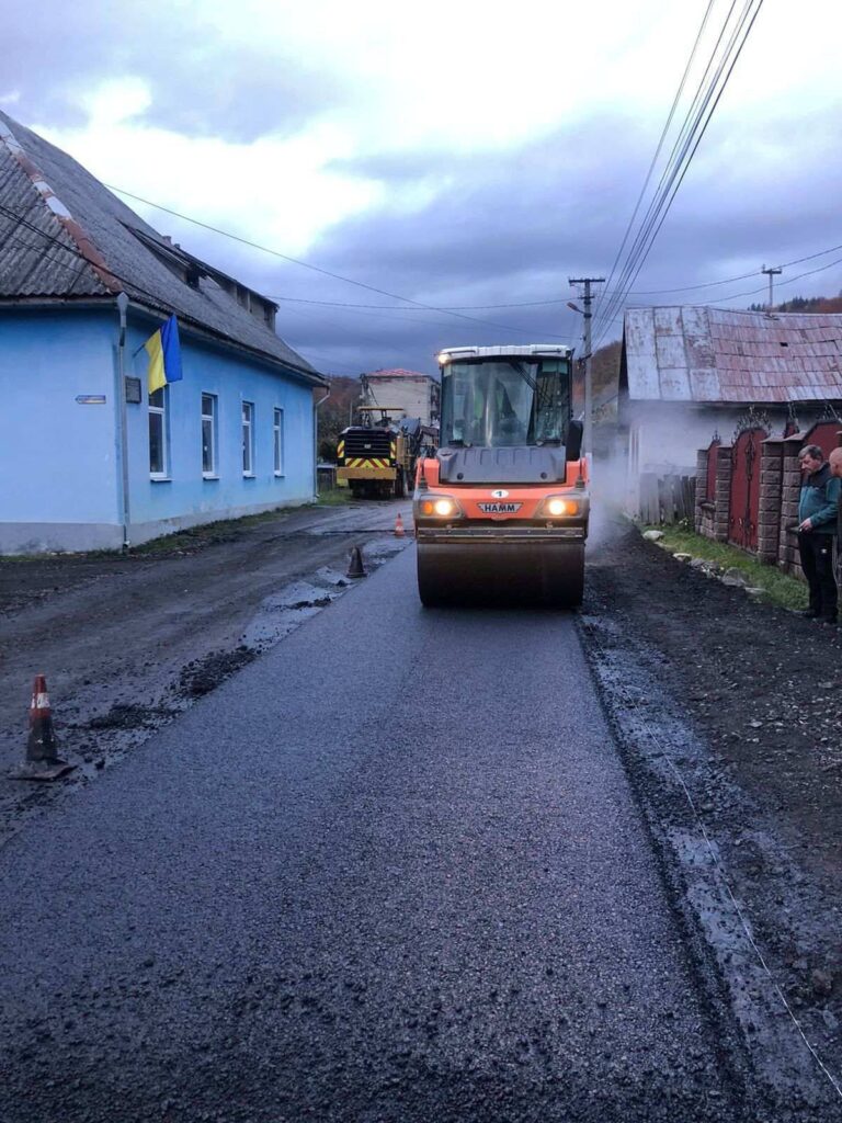 На Тячівщині дорожники здійснюють комплекс робіт із відновлення дорожнього покриття на дорозі місцевого значення Великий Бичків – Кобилецька Поляна.