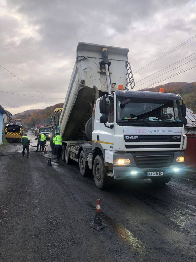 На згаданій ділянці робітники вже провели розпушування старого полотна. Також триває планування основи автогрейдером, ущільнення щебеневої суміші та встановлення нового шару асфальтобетону.