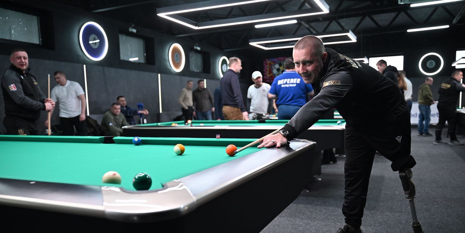 Відтепер цей вид спорту став адаптивним для ветеранів, адже для цього облаштували окрему залу, яка пристосована для людей з інвалідністю. Низькі столи розмістили на комфортній відстані один від одного, аби учасникам було зручно пересуватися на кріслі колісному.