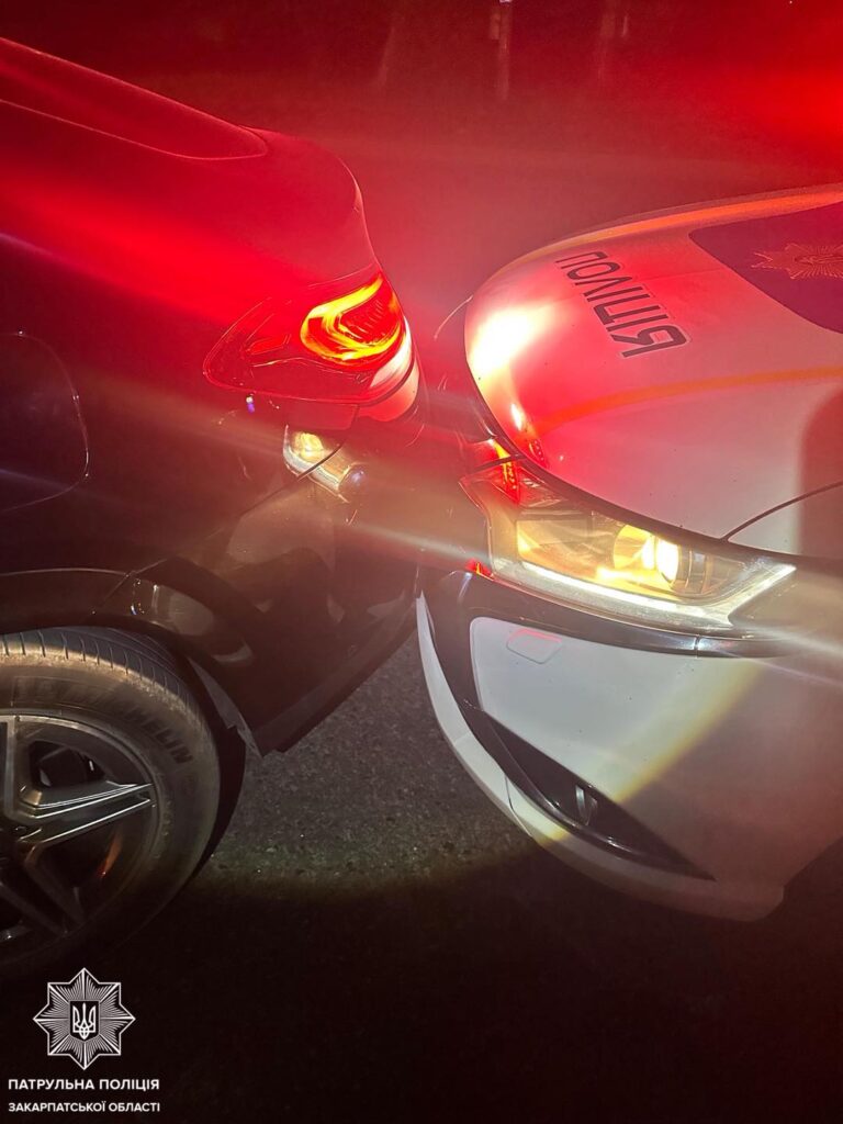 Учора ввечері в Ужгороді на вулиці Карпатської України жінка за кермом автомобіля Mercedes не зупинилася на вимогу патрульних та скоїла ДТП. Правоохоронці помітили транспортний засіб, який перебував в орієнтуванні.