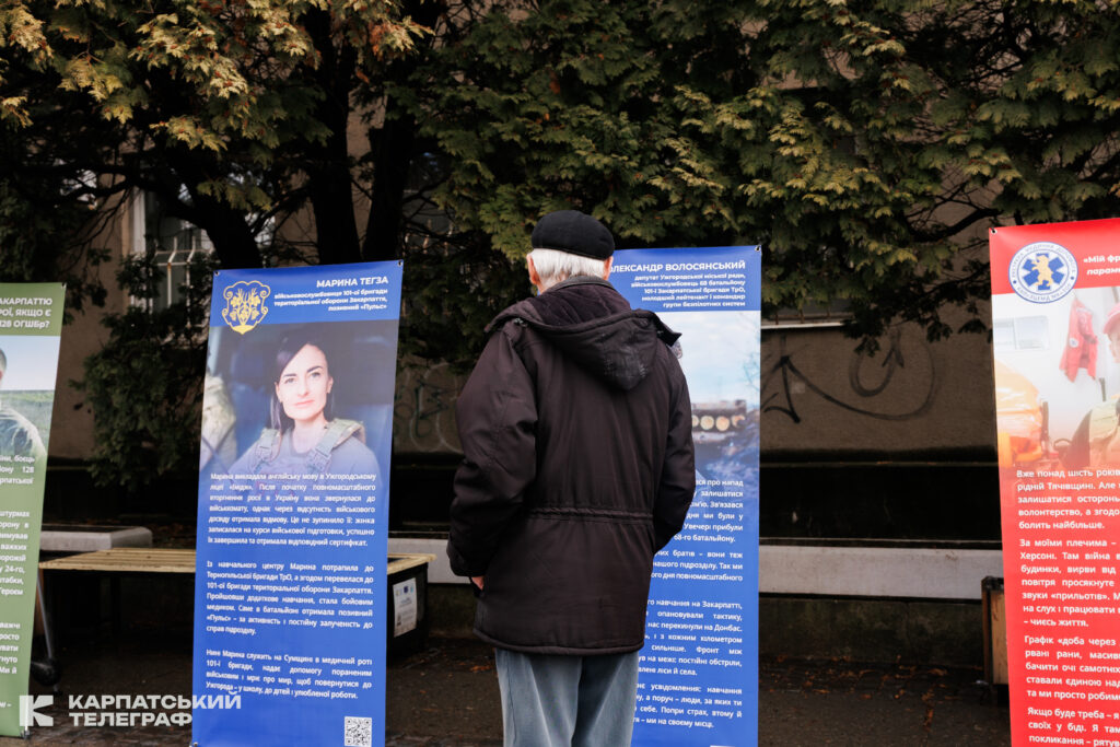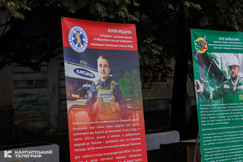 На Поштовій площі в Ужгороді відкрили фотовиставку «Вони тримають наш фронт», присвячену закарпатцям, які захищають Україну та долають наслідки бойових дій. Експозиція складається з 23 стендів, де представлені світлини та історії бійців 128-ї бригади, прикордонників, рятувальників, поліцейських, медиків екстреної допомоги, енергетиків та інших.