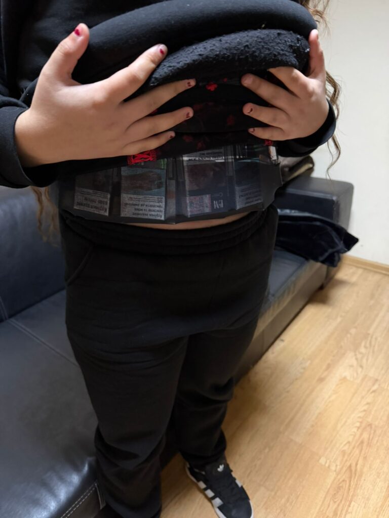 Прикордонники Чопського загону за допомогою металошукачів виявили в 34-річної закарпатки та її 16-річної знайомої приховані сигарети, які ті прикріпили до пояса під одягом.